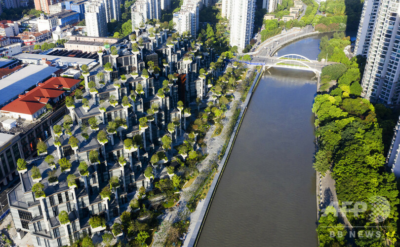 【8月26日 CNS】山のように積み上がった建物と、その建物から生え出したように林立する樹木。上海市北部を流れる蘇州河(Suzhou Creek)沿いの大型ショッピングモール「天安陽光広場」が、インターネットなどで「古代バビロンの空中庭園」(Hanging Gardens of Babylon)と呼ばれて注目を集めている。