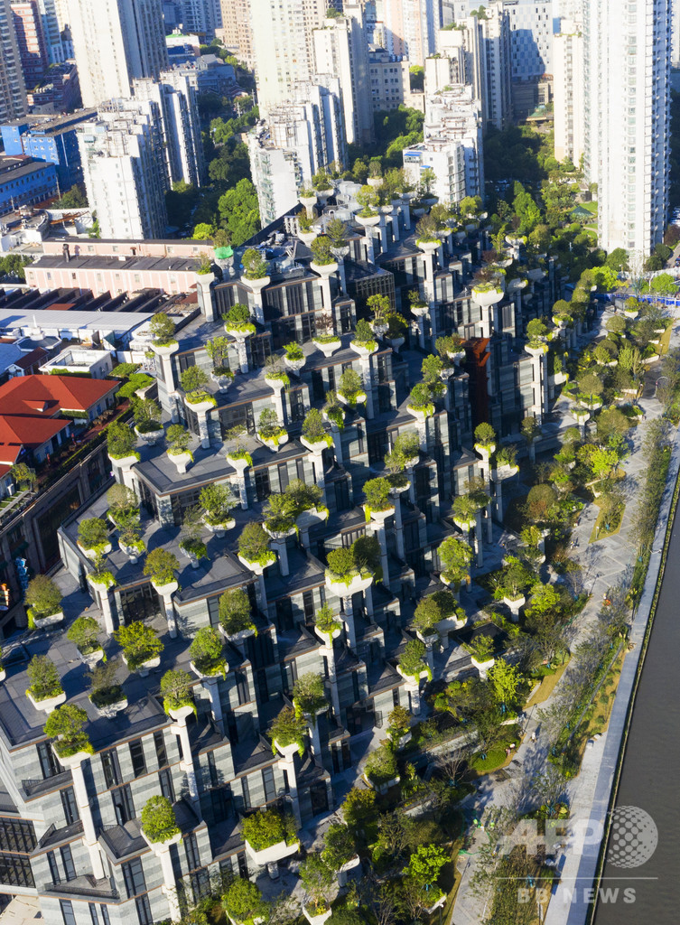 【8月26日 CNS】山のように積み上がった建物と、その建物から生え出したように林立する樹木。上海市北部を流れる蘇州河(Suzhou Creek)沿いの大型ショッピングモール「天安陽光広場」が、インターネットなどで「古代バビロンの空中庭園」(Hanging Gardens of Babylon)と呼ばれて注目を集めている。