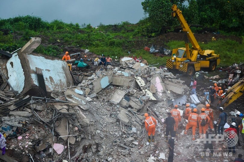 ビルの倒壊は24日夜、ムンバイの南方に位置する町マハード(Mahad)で発生。災害対応チーム3隊と災害救助犬が夜通し、トタン板や壊れたれんがなどをかき分けて捜索に当たった。
