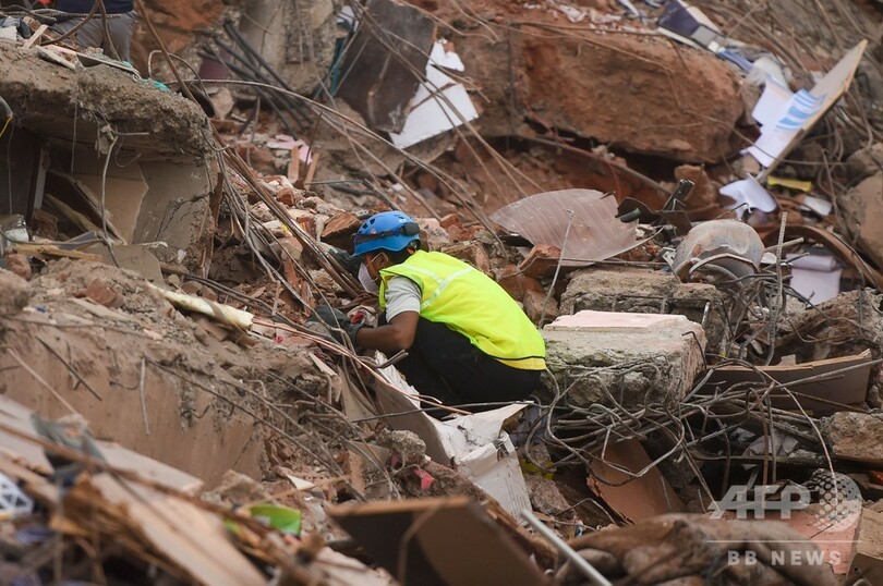 ビルの倒壊は24日夜、ムンバイの南方に位置する町マハード(Mahad)で発生。災害対応チーム3隊と災害救助犬が夜通し、トタン板や壊れたれんがなどをかき分けて捜索に当たった。