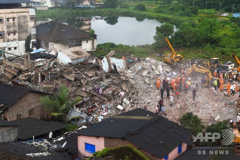 ビルの倒壊は24日夜、ムンバイの南方に位置する町マハード(Mahad)で発生。災害対応チーム3隊と災害救助犬が夜通し、トタン板や壊れたれんがなどをかき分けて捜索に当たった。