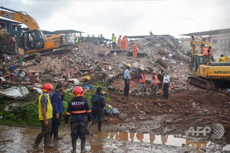 ビルの倒壊は24日夜、ムンバイの南方に位置する町マハード(Mahad)で発生。災害対応チーム3隊と災害救助犬が夜通し、トタン板や壊れたれんがなどをかき分けて捜索に当たった。