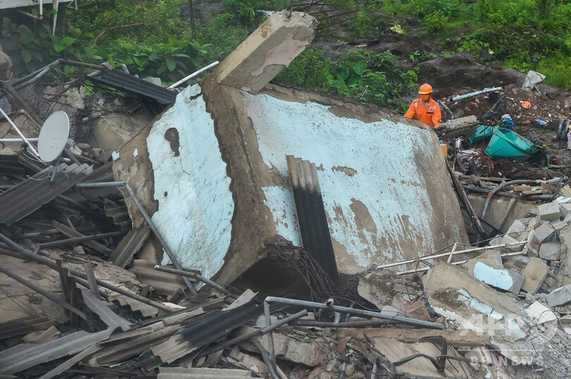 ビルの倒壊は24日夜、ムンバイの南方に位置する町マハード(Mahad)で発生。災害対応チーム3隊と災害救助犬が夜通し、トタン板や壊れたれんがなどをかき分けて捜索に当たった。