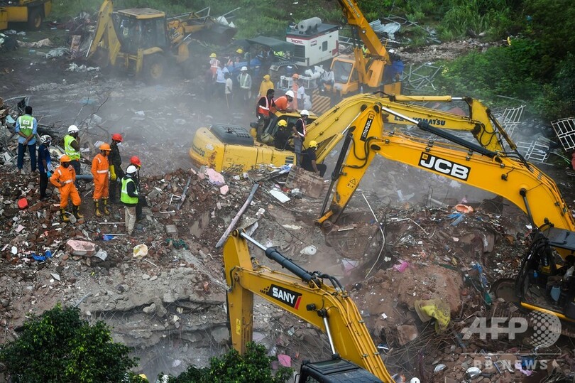 ビルの倒壊は24日夜、ムンバイの南方に位置する町マハード(Mahad)で発生。災害対応チーム3隊と災害救助犬が夜通し、トタン板や壊れたれんがなどをかき分けて捜索に当たった。