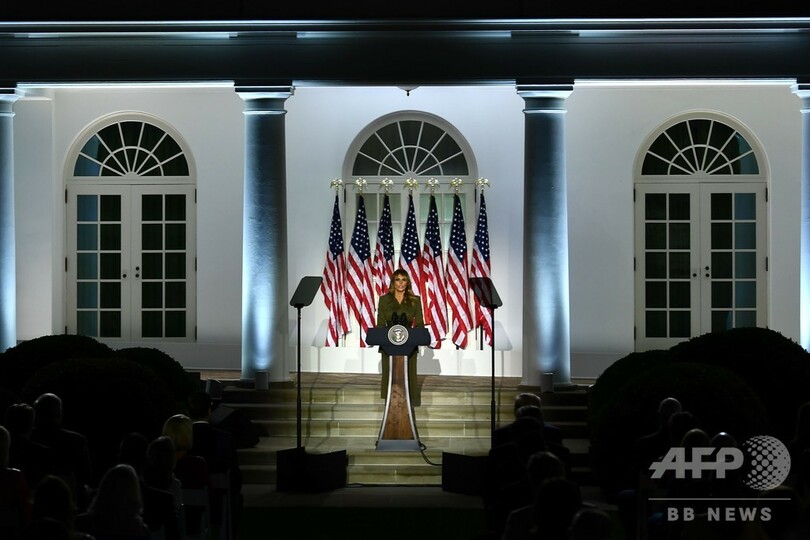【8月26日 AFP】メラニア・トランプ(Melania Trump)米大統領夫人は25日、ホワイトハウス(White House)のローズガーデン(Rose Garden)で行われた共和党の党大会で演説し、新型コロナウイルスの犠牲者に哀悼の意をささげ、人種間の融和を訴えた。