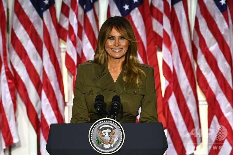 【8月26日 AFP】メラニア・トランプ(Melania Trump)米大統領夫人は25日、ホワイトハウス(White House)のローズガーデン(Rose Garden)で行われた共和党の党大会で演説し、新型コロナウイルスの犠牲者に哀悼の意をささげ、人種間の融和を訴えた。