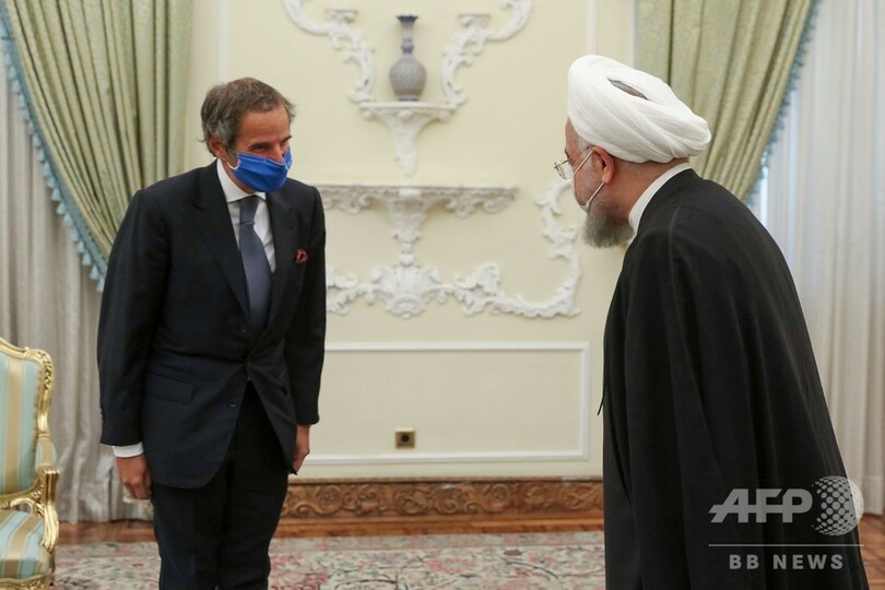 グロッシ氏のイラン訪問は事務局長就任から初めてで、共同声明は同氏訪問の結びに発表された。(c)AFP