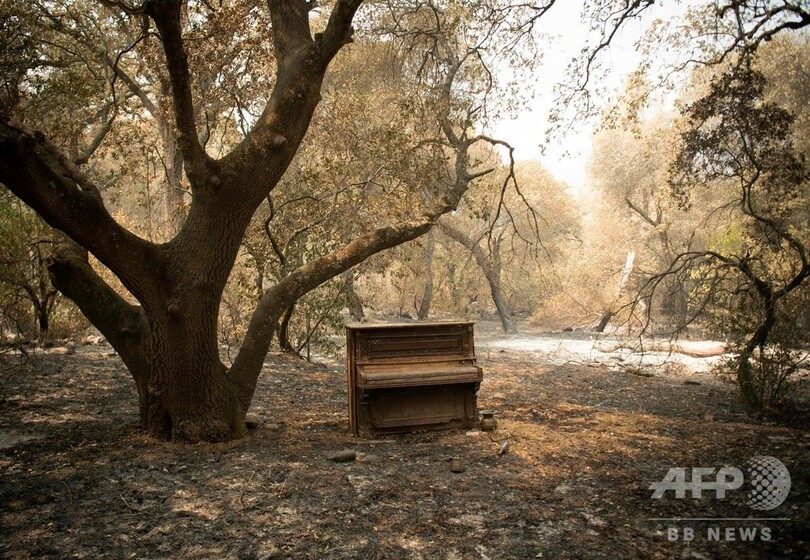 【8月31日 AFP】落雷による火災で焼け焦げた住宅近くに残る手付かずのピアノ。米カリフォルニア州バカビル(Vacaville)で。同州で史上最大級となった火災では、数万人が避難を強いられ、40万ヘクタール以上が焼失した。(c)AFP