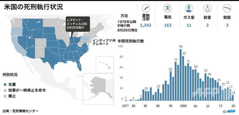【8月28日 AFP】米インディアナ州で26日夜、国内唯一の先住民出身の死刑囚の刑が執行された。先住民居留地「ナバホ・ネーション(Navajo Nation)」は、死刑判決は同居留地の自治権に対する侮辱だとし、刑の執行に反対していた。