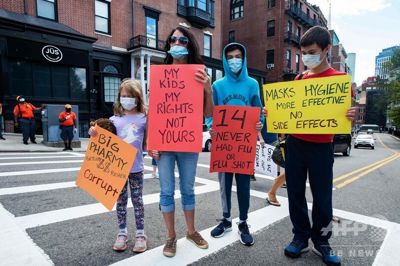 【8月31日 AFP】米マサチューセッツ州ボストン(Boston)で30日、インフルエンザの予防接種を児童・生徒に義務付ける新たな州法に抗議するデモが行われ、数百人が集まった。