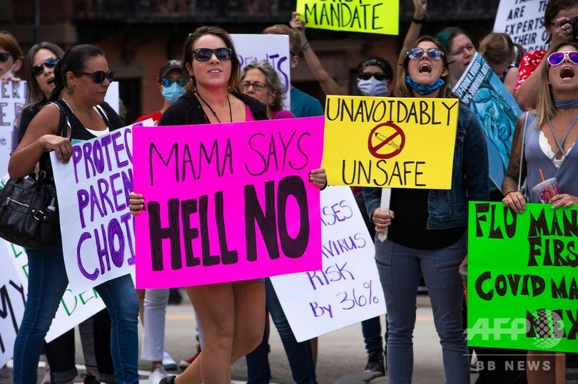 【8月31日 AFP】米マサチューセッツ州ボストン(Boston)で30日、インフルエンザの予防接種を児童・生徒に義務付ける新たな州法に抗議するデモが行われ、数百人が集まった。