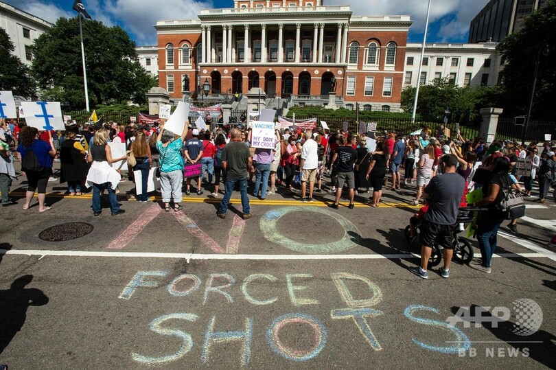 【8月31日 AFP】米マサチューセッツ州ボストン(Boston)で30日、インフルエンザの予防接種を児童・生徒に義務付ける新たな州法に抗議するデモが行われ、数百人が集まった。
