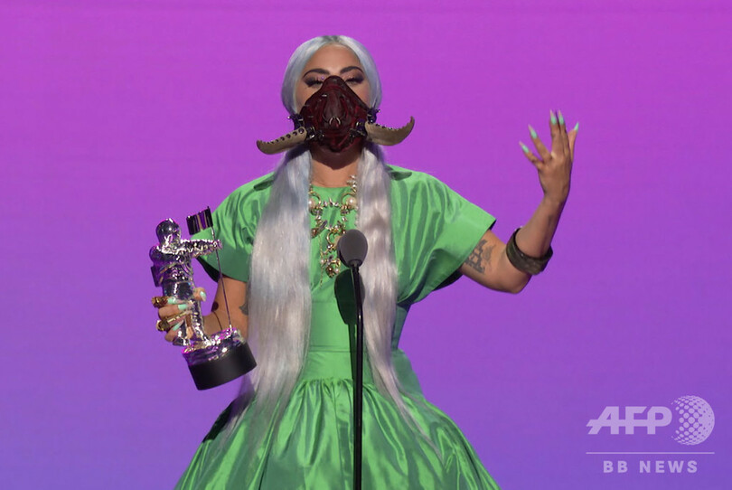 【8月31日 AFP】2020年のMTVビデオ・ミュージック・アワード(VMA)授賞式は30日、新型コロナウイルスの影響でソーシャル・ディスタンシング(対人距離の確保)に配慮して米ニューヨーク市で開催され、歌手のレディー・ガガ(Lady Gaga)が、アリアナ・グランデ(Ariana Grande)とのコラボレーション作品「Rain On Me」で最優秀楽曲賞と最優秀アーティスト賞(Artist of the Year)に輝いた。
