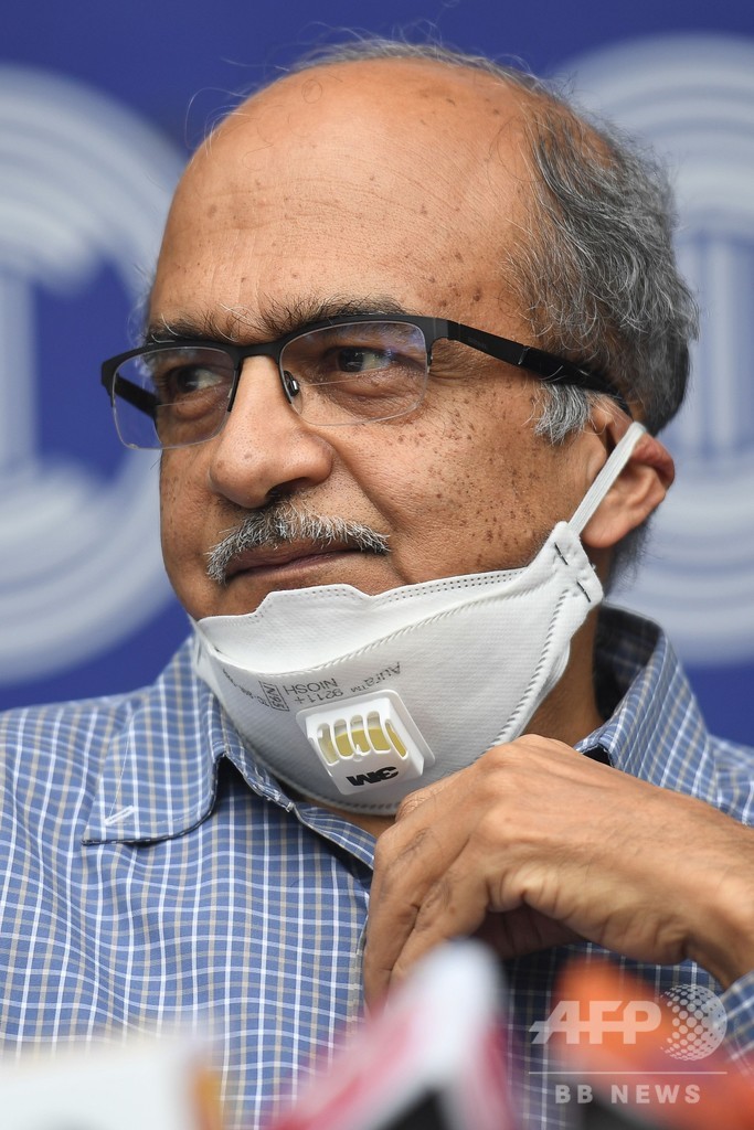 ブシャン氏は8月、侮辱行為で有罪が確定していた。最高裁はおそらくさらなる問題化を避けるため、謝罪の機会を与え、罰則を回避しようとした。だが、ブシャン氏は「自分の良心に対する侮辱になる」とし、これを拒否した。(c)AFP