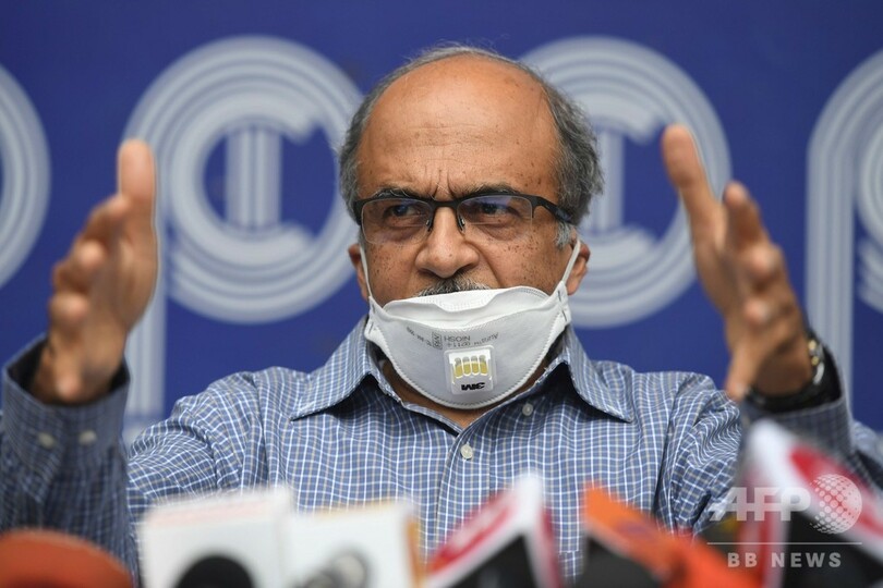 ブシャン氏は8月、侮辱行為で有罪が確定していた。最高裁はおそらくさらなる問題化を避けるため、謝罪の機会を与え、罰則を回避しようとした。だが、ブシャン氏は「自分の良心に対する侮辱になる」とし、これを拒否した。(c)AFP