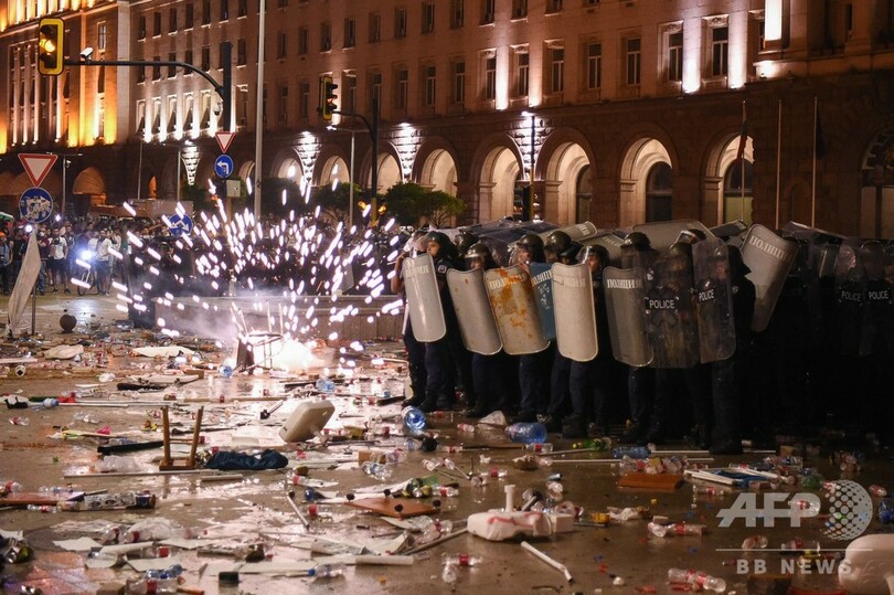 【9月3日 AFP】2か月近く反政府抗議デモが続くブルガリアで2日、首都ソフィアの議会前で行われていたデモが暴動に発展し、機動隊に発煙弾や爆竹、石などが投げつけられた。この衝突によって多数の警察官を含む少なくとも55人が負傷し、デモ参加者ら約100人が逮捕された。