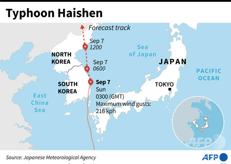 台風10号は7日昼すぎには朝鮮半島東側の日本海へ抜け、韓国気象庁(KMA)によると同日夜、北朝鮮・咸鏡北道(North Hamgyong Province)の清津(Chongjin)に再上陸する見通しだ。