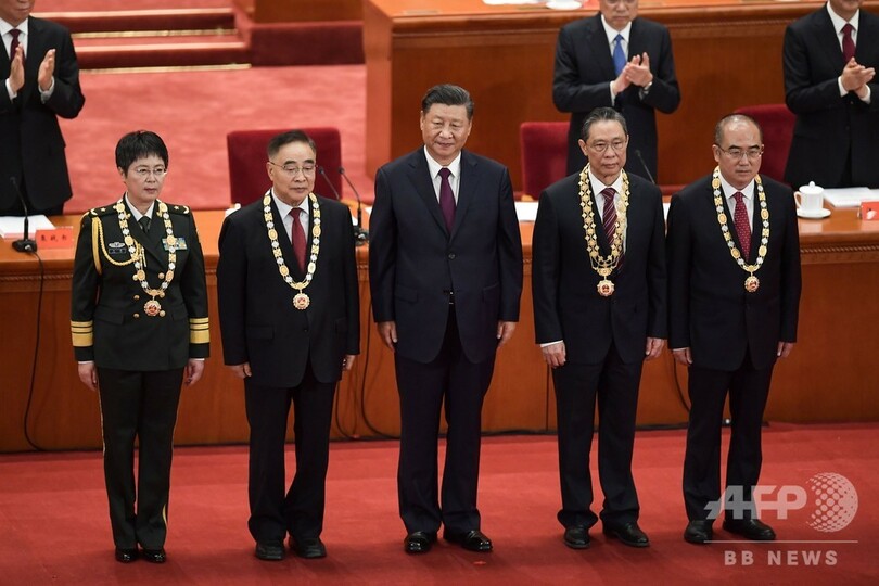 習氏は同日、マスクを着用し赤い花の特大胸章を着けた数百人の出席者の前で、医療分野の「英雄」4人に金の勲章を授与した。