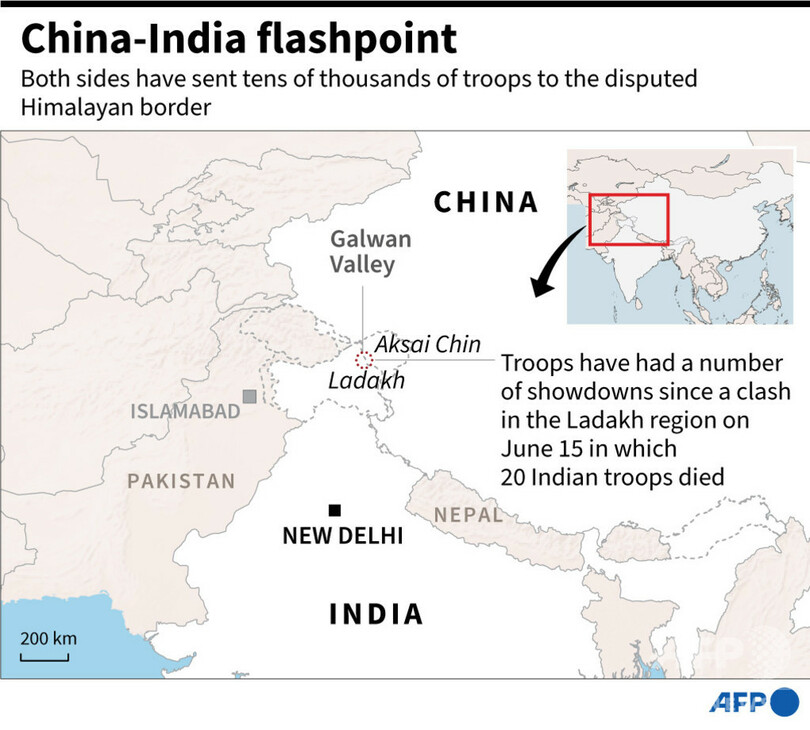 【9月8日 AFP】中国とインドの国境に位置するヒマラヤ(Himalaya)地域の係争地ラダック(Ladakh)で、過去数十年で初めてとされる発砲があった。これを受けて両国は8日、先に撃ったのは相手側だとして非難の応酬を繰り広げた。数か月前から続いている両国の衝突では、すでに少なくとも20人が死亡しており、今回の発砲で対立が激化している。