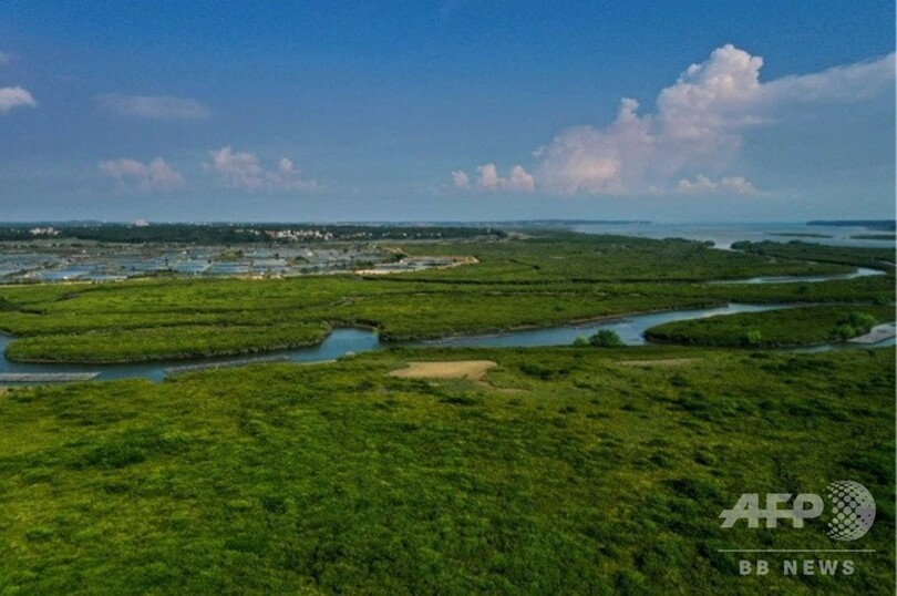 中国のマングローブ栽培の最北部、浙江省では近年の海辺の湿地保護、海岸線整備により、世界各地でマングローブ林の面積が減少する中でその面積が増えている。(c)People's Daily/AFPBB News