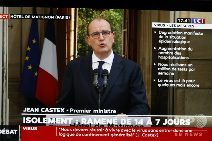 フランスでは、過去2日間で1日当たりの新規感染者数が1万人近く確認されており、大規模なコロナ検査が開始されて以降最多となった。パリの公邸からテレビで声明を発表したカステックス氏はコロナの入院患者数が最近増加していることが特に気掛かりだと述べた。