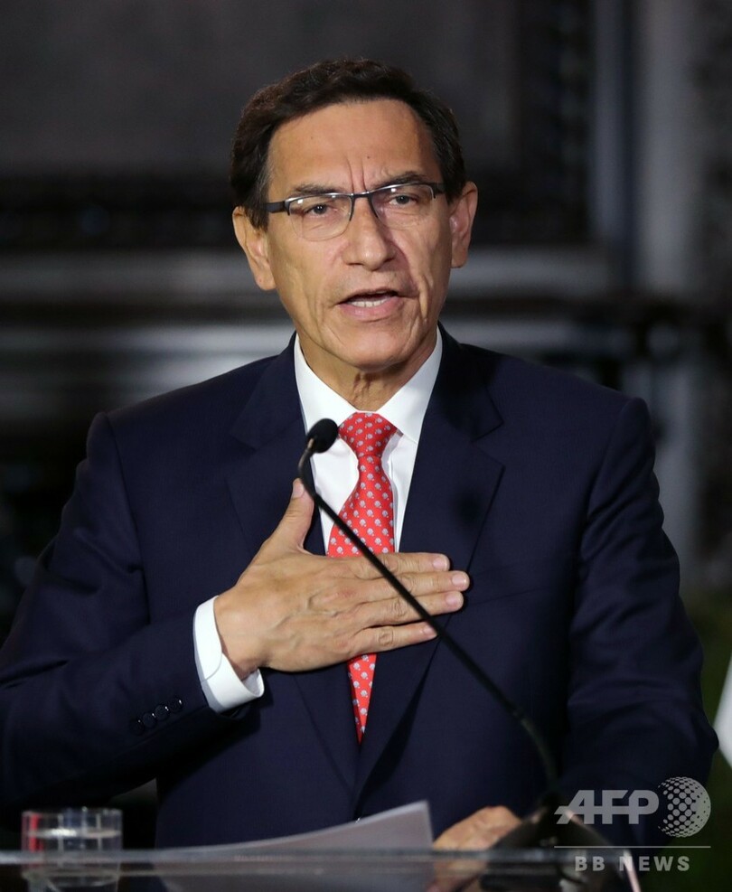 【9月12日 AFP】(更新、写真追加)南米ペルーの議会(一院制、定数130)は11日、政府当局者に対する汚職捜査を妨害しようとしたとされているマルティン・ビスカラ(Martin Vizcarra)大統領が「道徳的に不適任」だとして、弾劾手続きを開始するための動議を採決した。