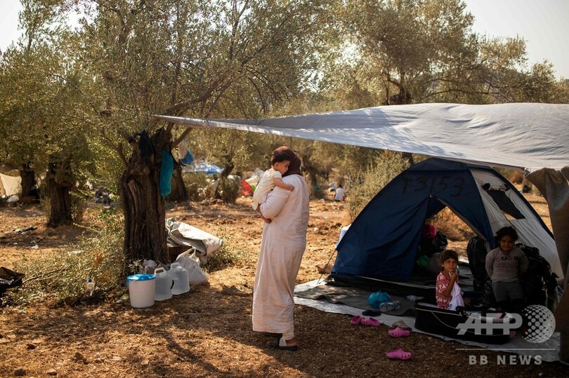 9日、レスボス(Lesbos)島にあるモリア(Moria)移民収容施設で放火とみられる火災があり、密集して暮らしていた難民申請者およそ1万1000人が避難した。高齢者や子どもも含まれ、火災以来、野外での寝泊まりを強いられている。