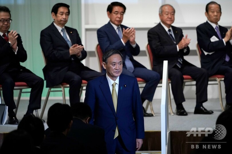【9月14日 AFP】(更新、写真追加)自民党の総裁選挙は14日、新総裁に菅義偉(Yoshihide Suga)官房長官(71)を選出した。安倍晋三(Shinzo Abe)氏の後任として、次期首相に就任することになる。