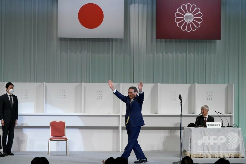 【9月14日 AFP】(更新、写真追加)自民党の総裁選挙は14日、新総裁に菅義偉(Yoshihide Suga)官房長官(71)を選出した。安倍晋三(Shinzo Abe)氏の後任として、次期首相に就任することになる。