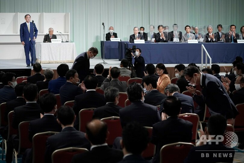 【9月14日 AFP】(更新、写真追加)自民党の総裁選挙は14日、新総裁に菅義偉(Yoshihide Suga)官房長官(71)を選出した。安倍晋三(Shinzo Abe)氏の後任として、次期首相に就任することになる。