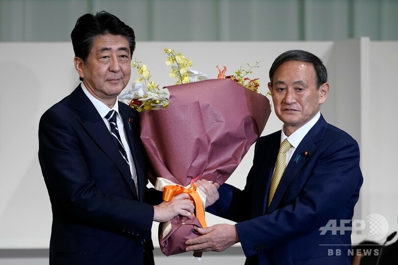 【9月14日 AFP】(更新、写真追加)自民党の総裁選挙は14日、新総裁に菅義偉(Yoshihide Suga)官房長官(71)を選出した。安倍晋三(Shinzo Abe)氏の後任として、次期首相に就任することになる。