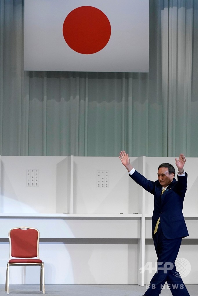 【9月14日 AFP】(更新、写真追加)自民党の総裁選挙は14日、新総裁に菅義偉(Yoshihide Suga)官房長官(71)を選出した。安倍晋三(Shinzo Abe)氏の後任として、次期首相に就任することになる。
