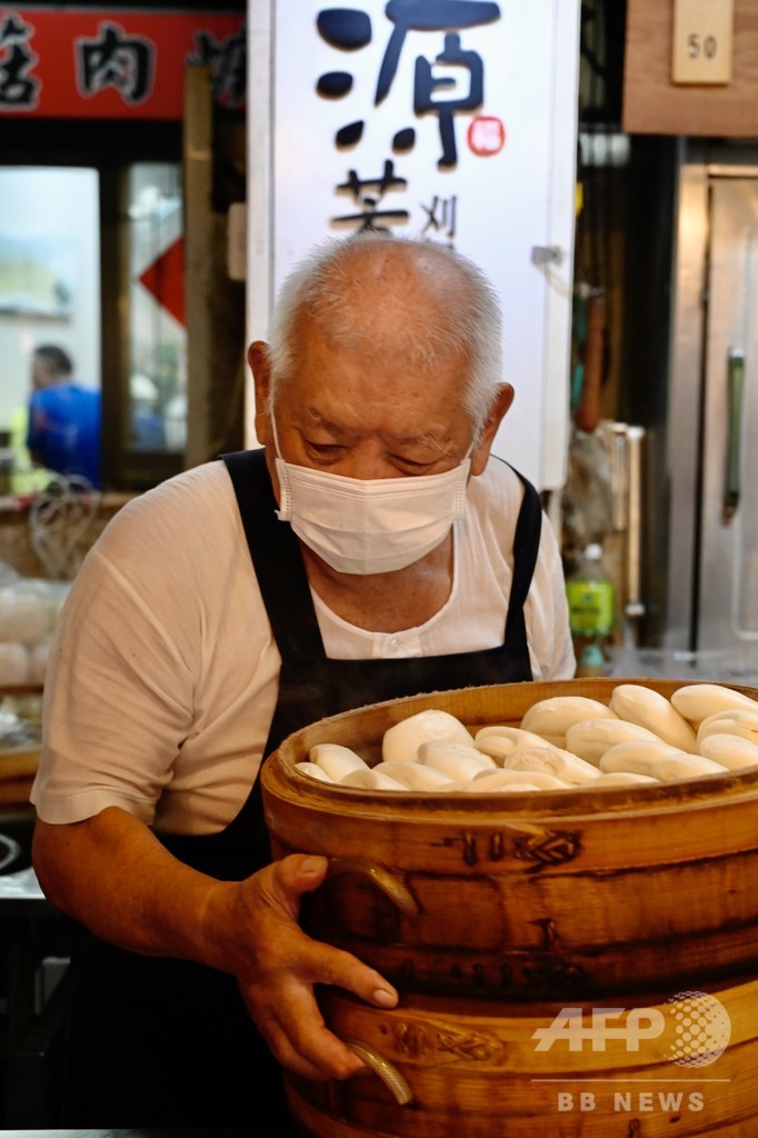 【9月19日 AFP】台湾で屋台を経営する呉黄義(Wu Huang-yi)さん(80)が大きな蒸し器のふたを開けると湯気が上がり、中から台湾式バーガー「刈包(グアバオ)」の20個余りの熱いバンズが現れた。刈包は、円形の平たいまんじゅうに豚の角煮と野菜の漬物、香菜(シャンツァイ)、ピーナツの粉などを挟んだものだ。
