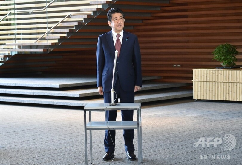 安倍氏は、今後も議員として留任し、菅氏を支持すると表明。一部では、安倍氏が外交任務を引き継ぐのではないかとの声も上がっている。(c)AFP/Hiroshi HIYAMA, Sara HUSSEIN
