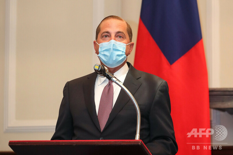 8月に米国のアレックス・アザー(Alex Azar)厚生長官が台湾を訪問したばかり。アザー氏は台湾の新型コロナウイルス感染症(COVID-19)対策を称賛した。その際、中国は米政府に対し、台湾との公式交流に「断固反対する」と警告。中国政府は台湾を自国領の一部と見なしており、武力による統一も辞さない構えを取っている。(c)AFP