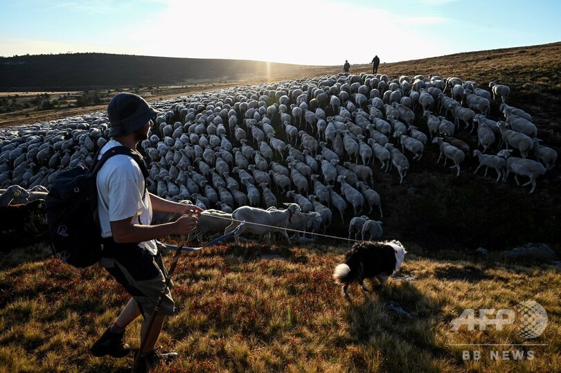 【9月19日 AFP】フランスの中央高地(Massif Central)を照らす朝日の中で、2500匹もの雌羊の群れが鈴の音と共に駆けていく。ロゼール山(Mont Lozere)から30キロ下の谷に向かう「移牧」、つまり移動放牧の群れの中でも最大規模だ。ただこの伝統も、近年はその存続が脅かされている。