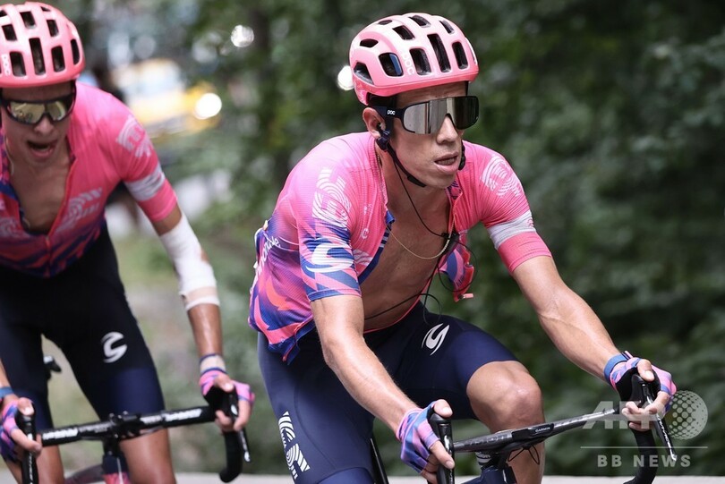 一方で、イネオスに所属し、大会連覇を狙ったエガン・ベルナル(Egan Bernal、コロンビア)は、このステージを前に棄権している。(c)AFP/Damian MCCALL