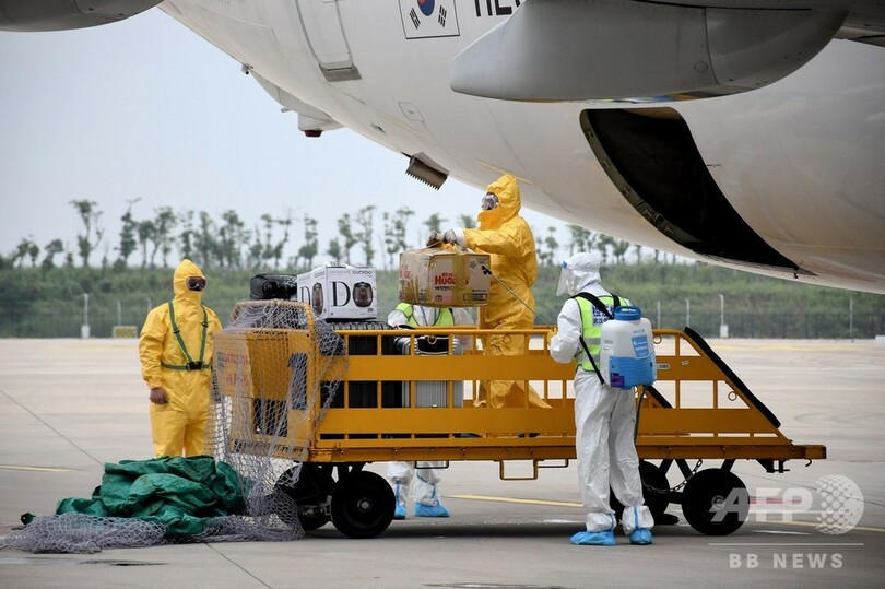 国営中国中央テレビ(CCTV)によると、韓国の格安航空会社ティーウェイ航空(T'way Air)の旅客機は17日午前、乗客60人を乗せ武漢天河国際空港(Wuhan Tianhe International Airport)に着陸した。空港では白い防護服とマスク、フェースシールドを身に着けた当局者らが、到着した乗客のパスポートを確認する様子がみられた。
