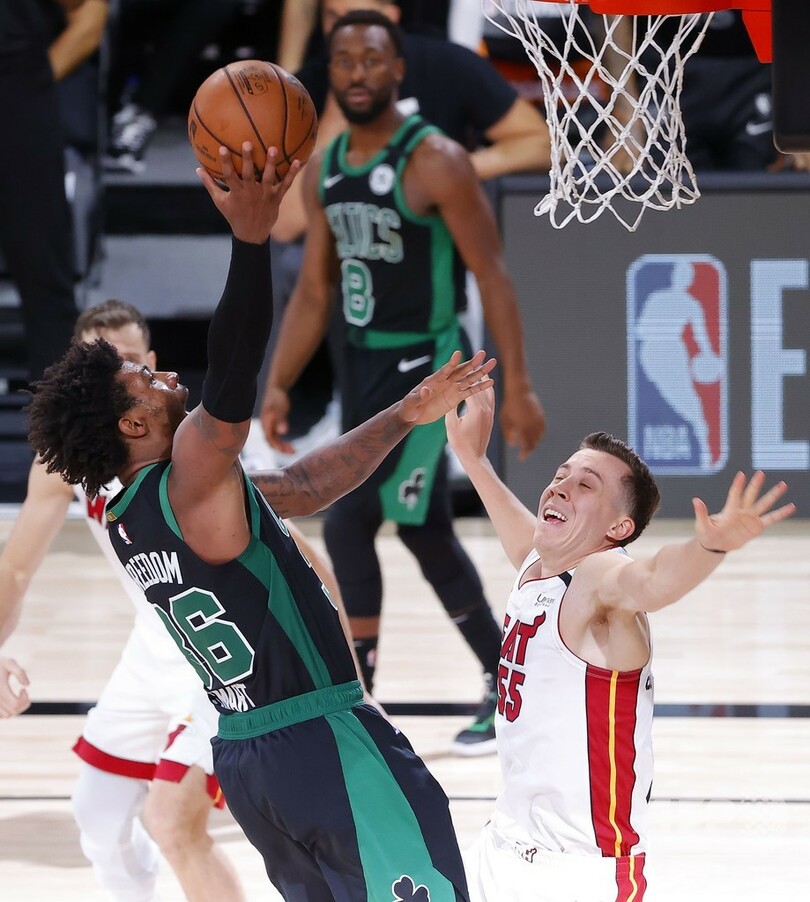 【9月18日 AFP】19-20NBAは17日、プレーオフのイースタンカンファレンス決勝(7回戦制)が行われ、後半に強さを発揮したマイアミ・ヒート(Miami Heat)が106-101でボストン・セルティックス(Boston Celtics)に再び逆転勝利し、シリーズ戦績2勝0敗でリードした。