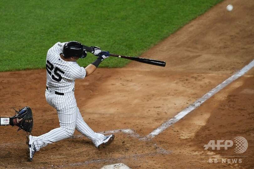 【9月18日 AFP】米大リーグ(MLB)、ニューヨーク・ヤンキース(New York Yankees)は17日、ホームでのトロント・ブルージェイズ(Toronto Blue Jays)戦で球団史上初となる1イニング5本塁打を放ち、10-7で勝利した。