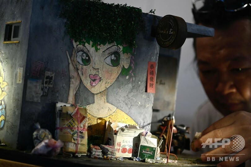 【9月26日 AFP】のどかな田舎の食料品店からロボット戦士の基地まで──台湾の職人らは現実と空想を融合させた、精緻なミニチュアの世界を作り出す。