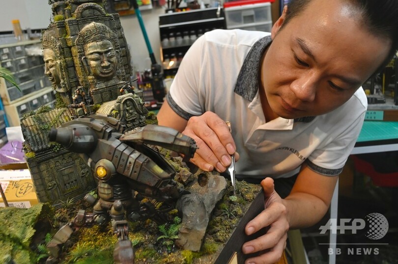 【9月26日 AFP】のどかな田舎の食料品店からロボット戦士の基地まで──台湾の職人らは現実と空想を融合させた、精緻なミニチュアの世界を作り出す。