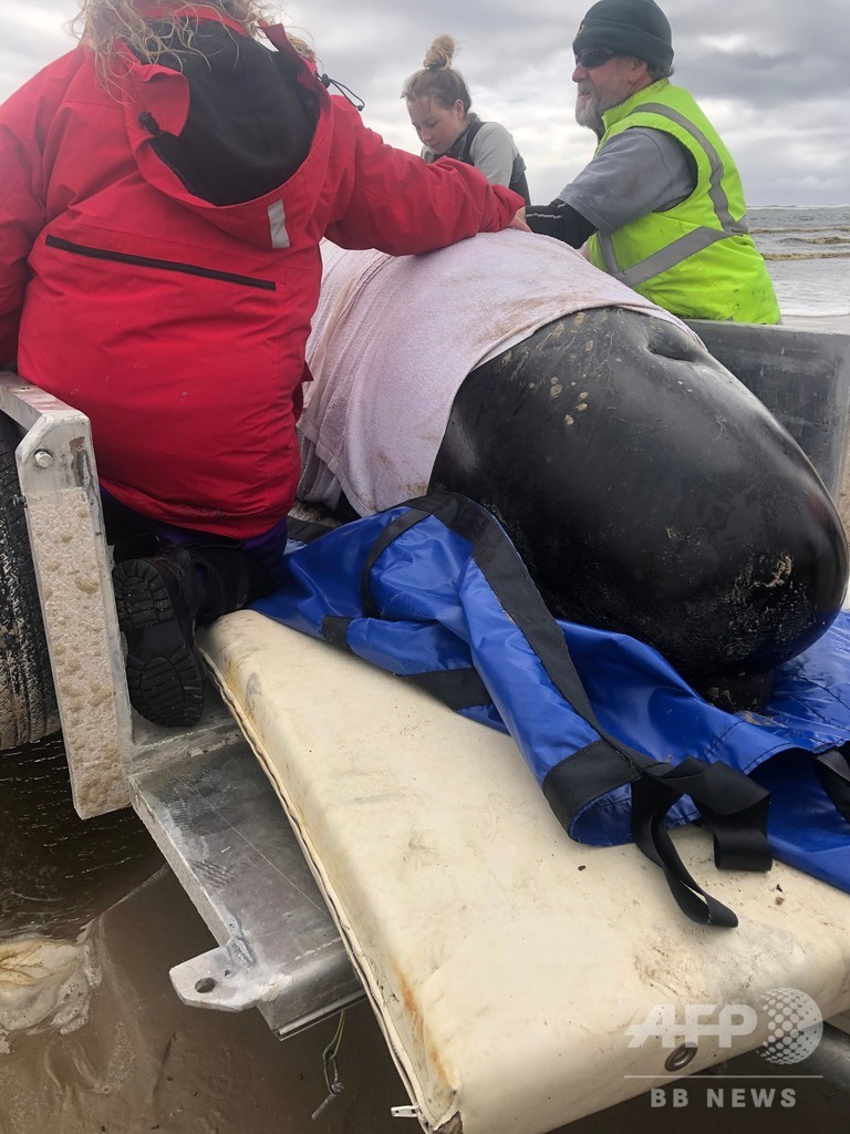 【9月23日 AFP】オーストラリア南部タスマニア(Tasmania)島西岸の浅瀬に打ち上げられた大量のクジラの救助活動に当たる当局は23日、大規模な救助活動もむなしく380頭が死んだと発表した。