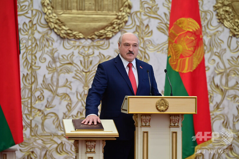【9月23日 AFP】(写真追加)ベラルーシの国営メディアは23日、アレクサンドル・ルカシェンコ(Alexander Lukashenko)大統領が事前告知なしの非公開就任式で、6期目の就任宣誓を行ったと報じた。