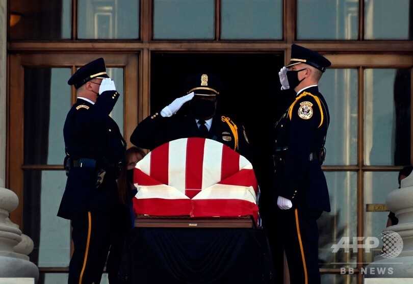 【9月24日 AFP】米首都ワシントンの最高裁判所で23日、先週亡くなったルース・ベイダー・ギンズバーグ(Ruth Bader Ginsburg)最高裁判事のひつぎが安置され、多くの人が追悼に訪れた。