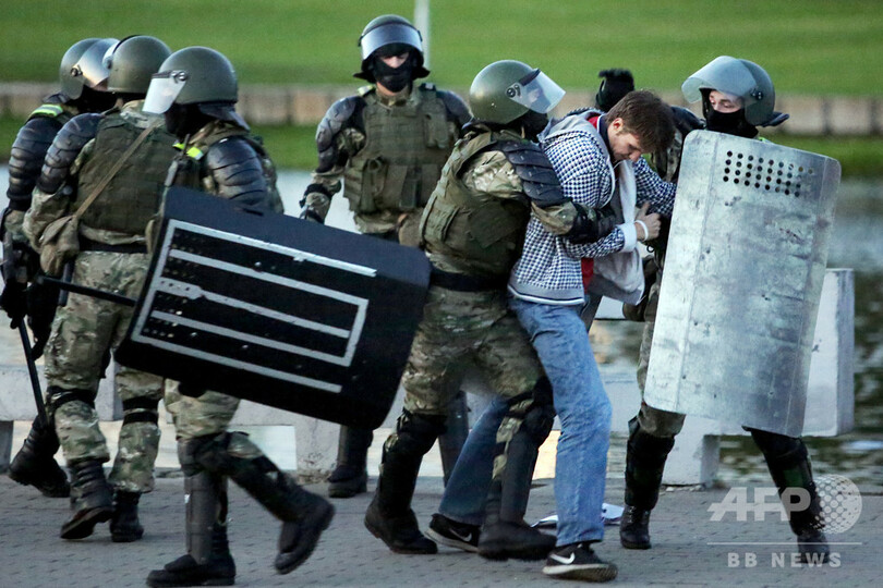 ミンスクでは覆面の機動隊とデモ隊が衝突。人権団体「ビアスナ人権センター(Viasna Human Rights Centre)」によると、ミンスクや南西部ブレスト(Brest)などで150人以上が拘束された。