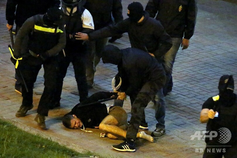 ミンスクでは覆面の機動隊とデモ隊が衝突。人権団体「ビアスナ人権センター(Viasna Human Rights Centre)」によると、ミンスクや南西部ブレスト(Brest)などで150人以上が拘束された。