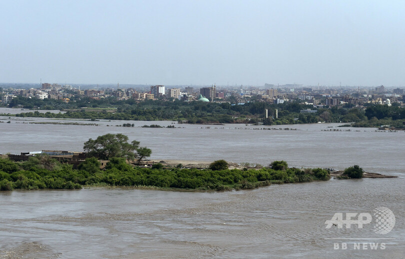 首都ハルツームで白ナイル(White Nile)川に合流する青ナイル川は、1世紀以上前に観測を始めて以来の最高水位を記録した。(c)AFP