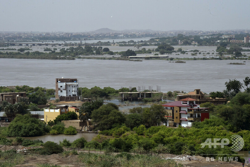 首都ハルツームで白ナイル(White Nile)川に合流する青ナイル川は、1世紀以上前に観測を始めて以来の最高水位を記録した。(c)AFP
