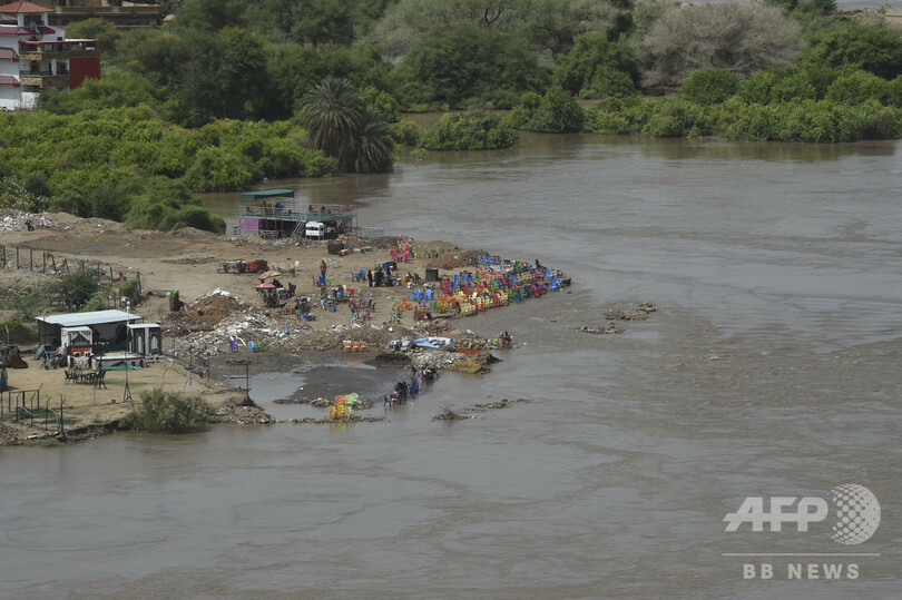 首都ハルツームで白ナイル(White Nile)川に合流する青ナイル川は、1世紀以上前に観測を始めて以来の最高水位を記録した。(c)AFP